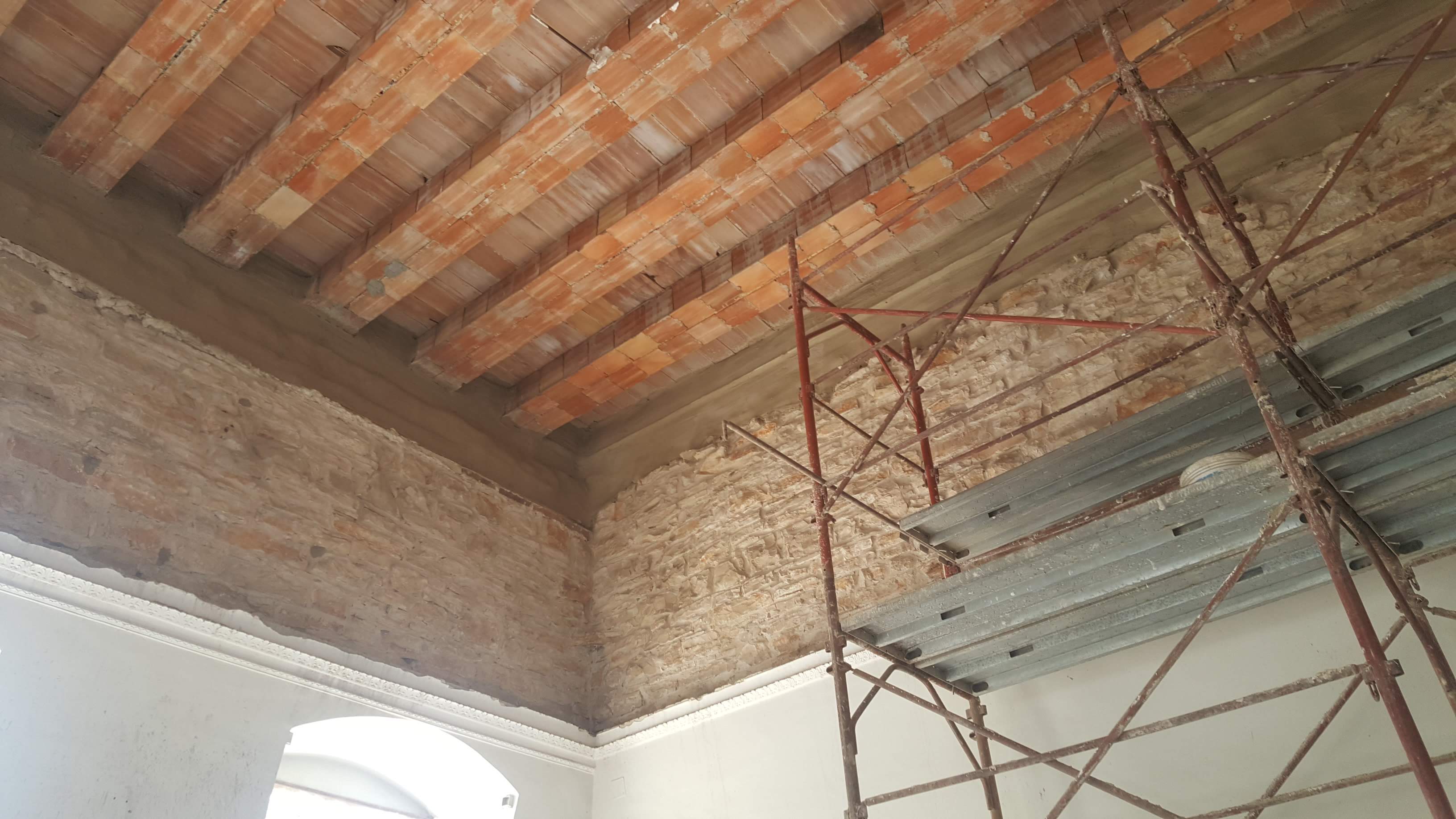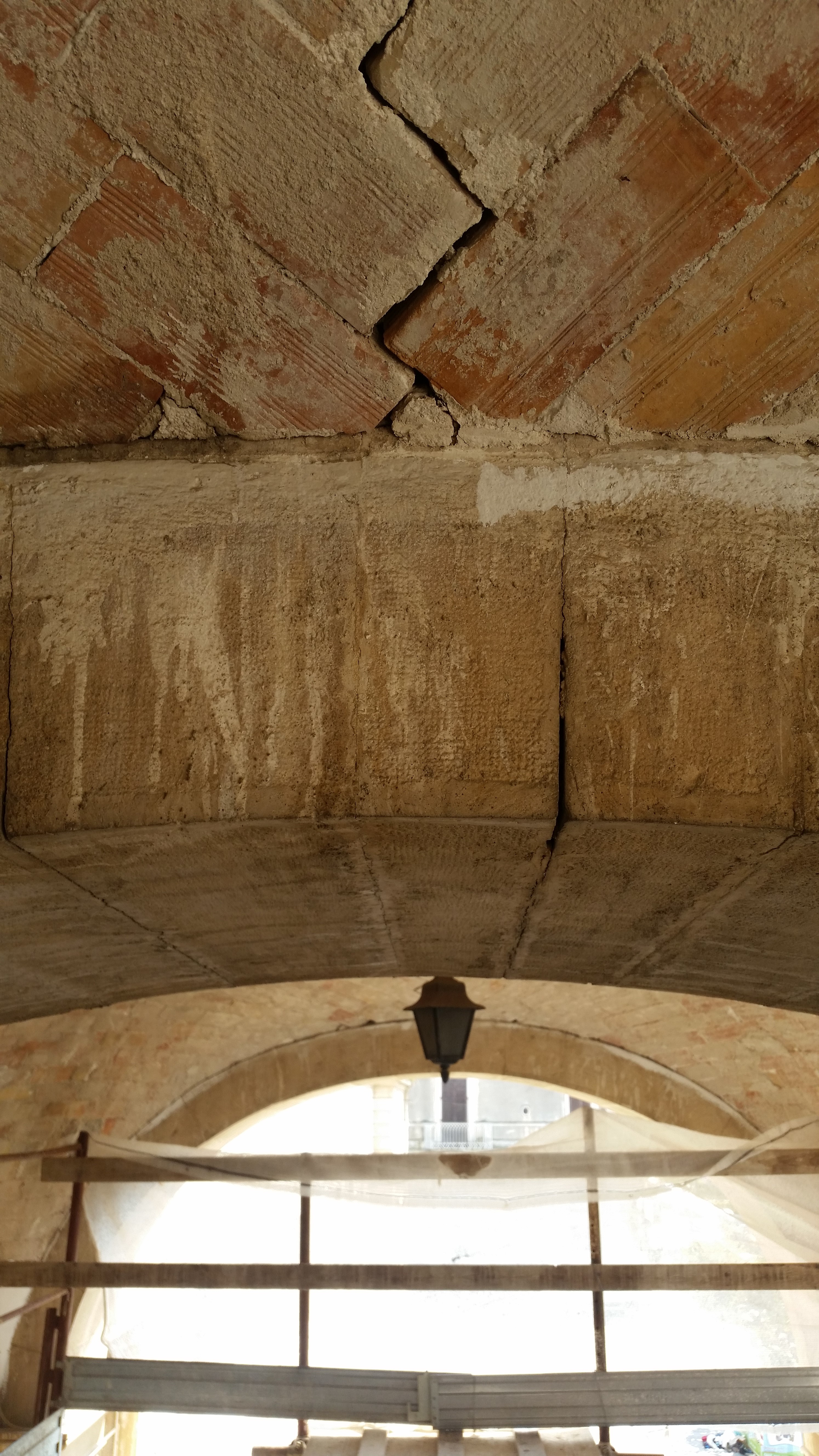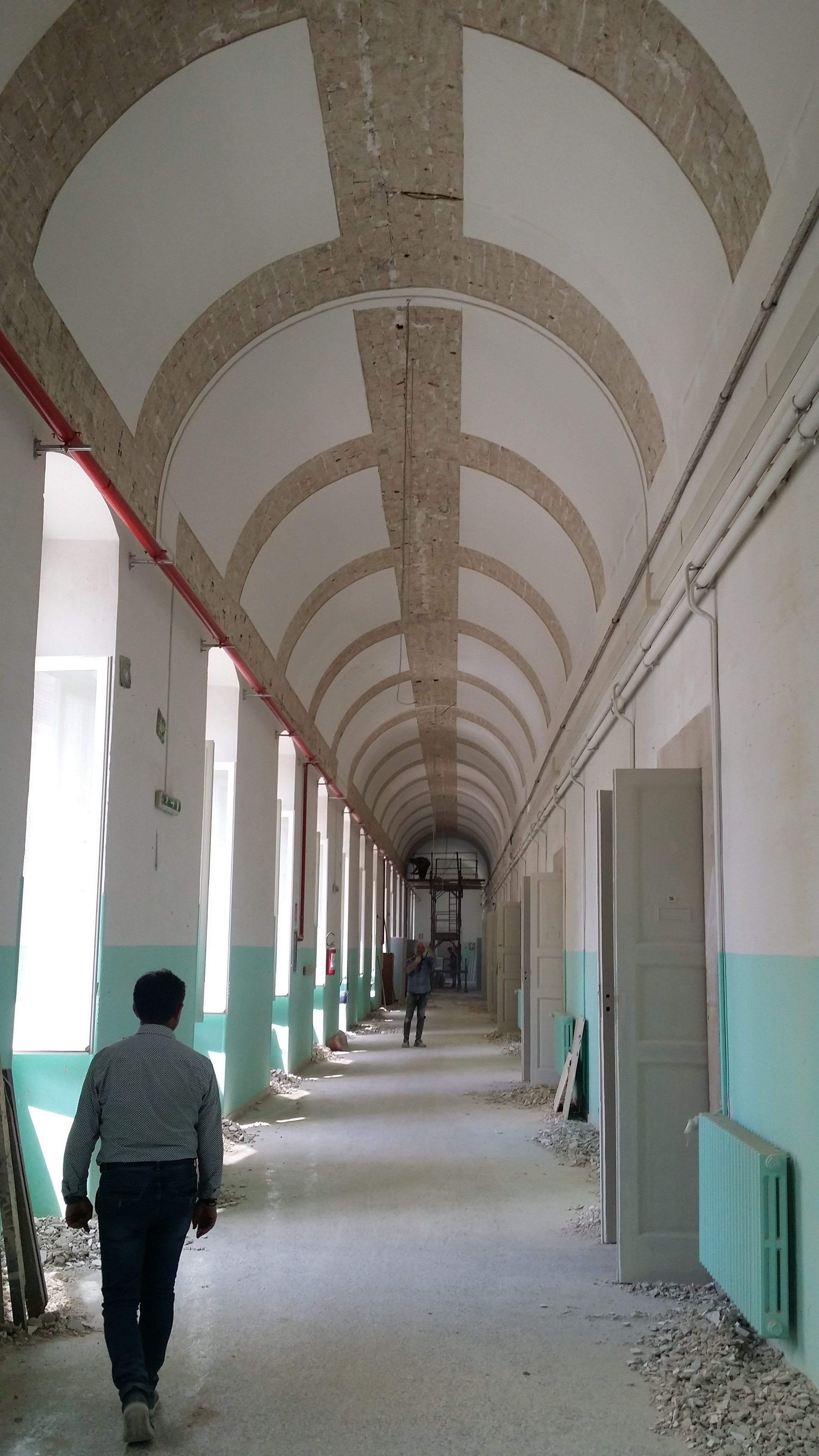 a. Realizzazione di intonaco armato monolaterale sulle volte in laterizio dei corridoi, opportunamente risvoltato e tassellato sulle pareti murarie d’ambito, e finalizzato al contenimento del danno delle volte esistenti costituite da laterizi forati.